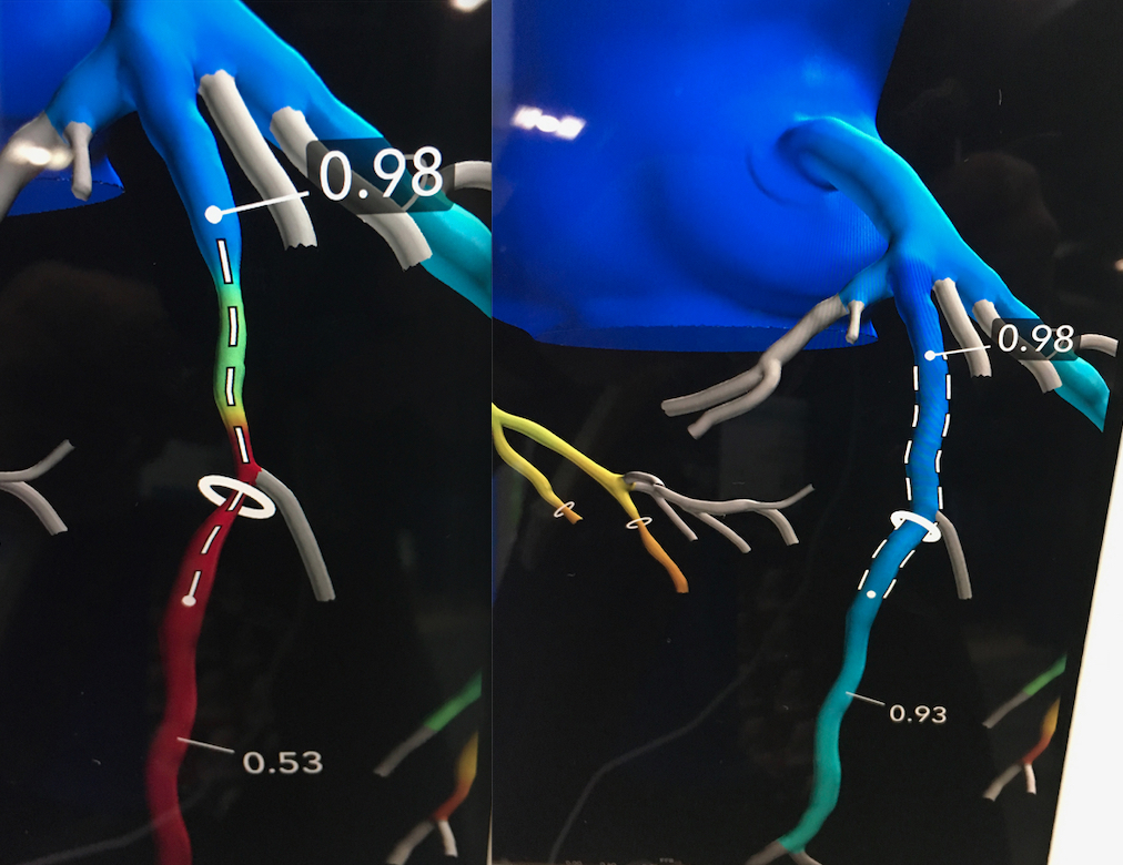 The software does not take into account heavy calcium, existing stents or other issues that might be encountered, but gives the operator an idea of which lesions are critical to the patient.